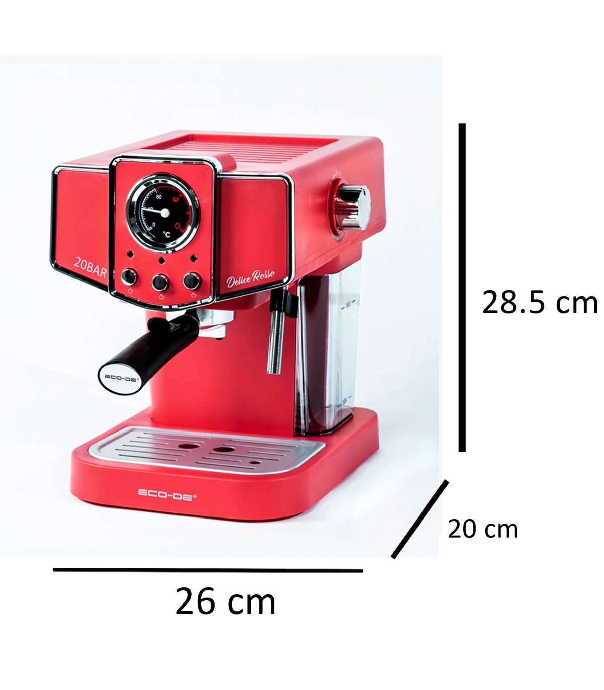 ECODE Cafetera Espresso DELICE ROSSO, 20 Bares de Presión, Vaporizador, Depósito 1.5 Litros, Manómetro con Temperatura