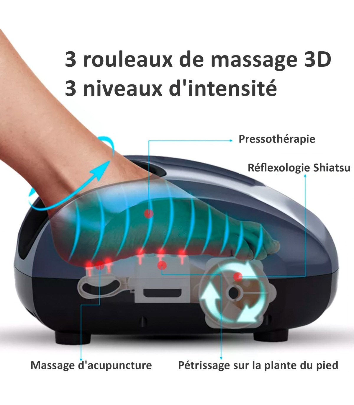 Met de elektrische voetmassageapparaat LEG MOTION kun je je benen masseren en genieten van talrijke voordelen, zoals het verbeteren van de bloedcirculatie, het ontspannen van de spieren, het voorkomen van spataderen, het verminderen van zwellingen in de benen, het afvoeren van overtollig vocht en het verlichten van spier- en gewrichtspijn.