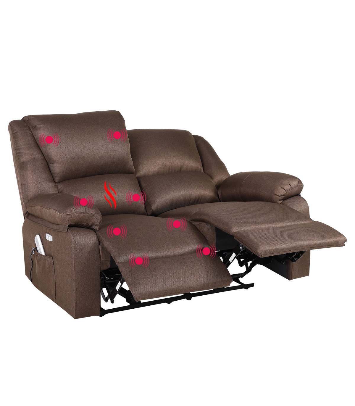 ECODE® Sofa 2 Plazas con Reclinacion Independiente Electrica y Masaje - Modo Reclinable TV Independiente en Cada Lado, 8 Vibromotores, Calor Lumbar, Doble Botonera (Beige)