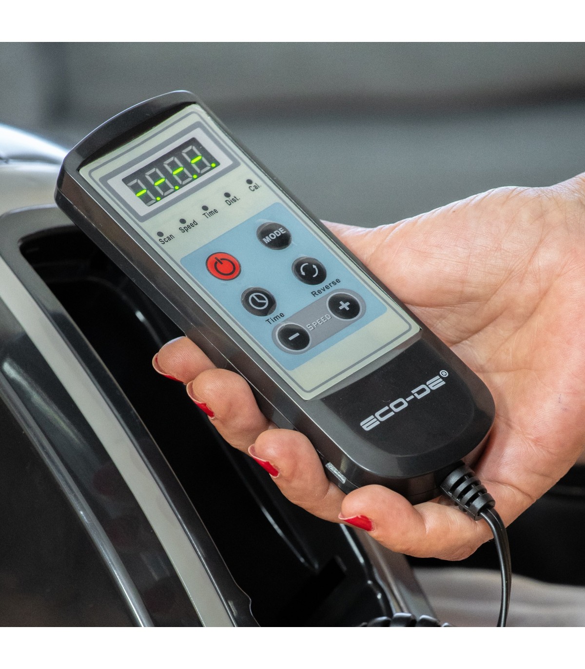 Ontspannende bruine massagestoel met programma's die slapeloosheid en rug- of gewrichtspijn kunnen bestrijden, de bloedcirculatie verbeteren en het lichaam en geest ontspannen. Geniet op elk moment van de dag van een massage in uw huis met de 'Monaco' ECO-DE® massagestoel in het bruin.