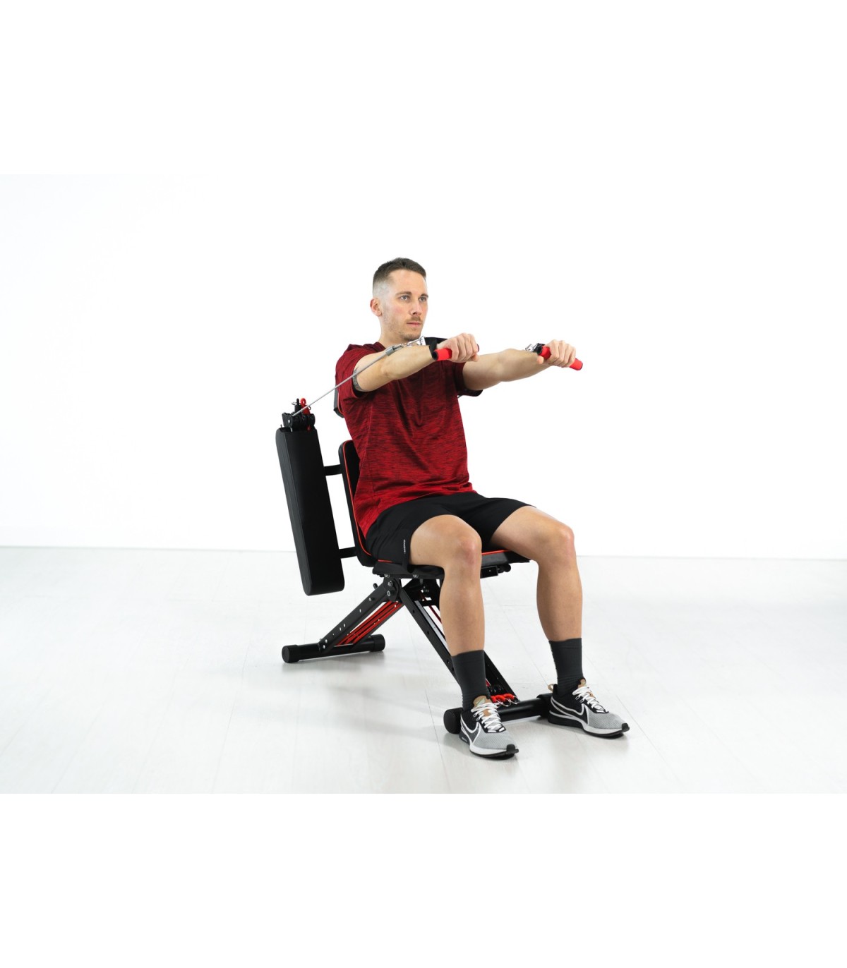 Completo ultracompacto multiestación de fitness que le permitirá entrenar todos los grupos musculares sin necesidad de acudir a un gimnasio. Podrá realizar más de 50 ejercicios en la comodidad de su casa independientemente e cual sea su edad o nivel físico. Hecho de acero y con un sistema ultra resistente de gomas elásticas.